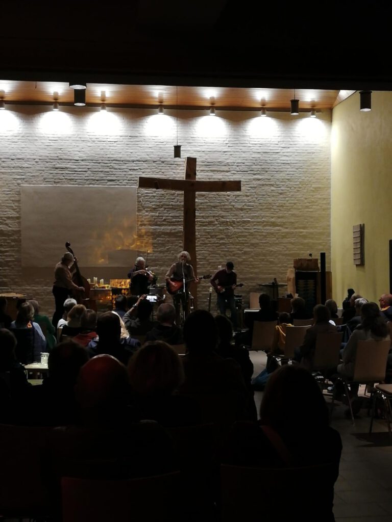 Nach einer kurzen Umbaupause mit Möglichkeit zum Austausch bei einem Getränk ging es mit der Band „Eigenartig“ weiter. Ralf Raber, Manfred Efler, Heinz Lötters und Godehard Reul kreierten mit ihren selbstgeschriebenen Texten und mit ihren Instrumenten eine leichte, lustige und auch nachdenkliche, philosophische Stimmung. Dabei ging es um Mücken, Käse, Liebe und alles, was das Leben sonst noch so für uns bereit hält.