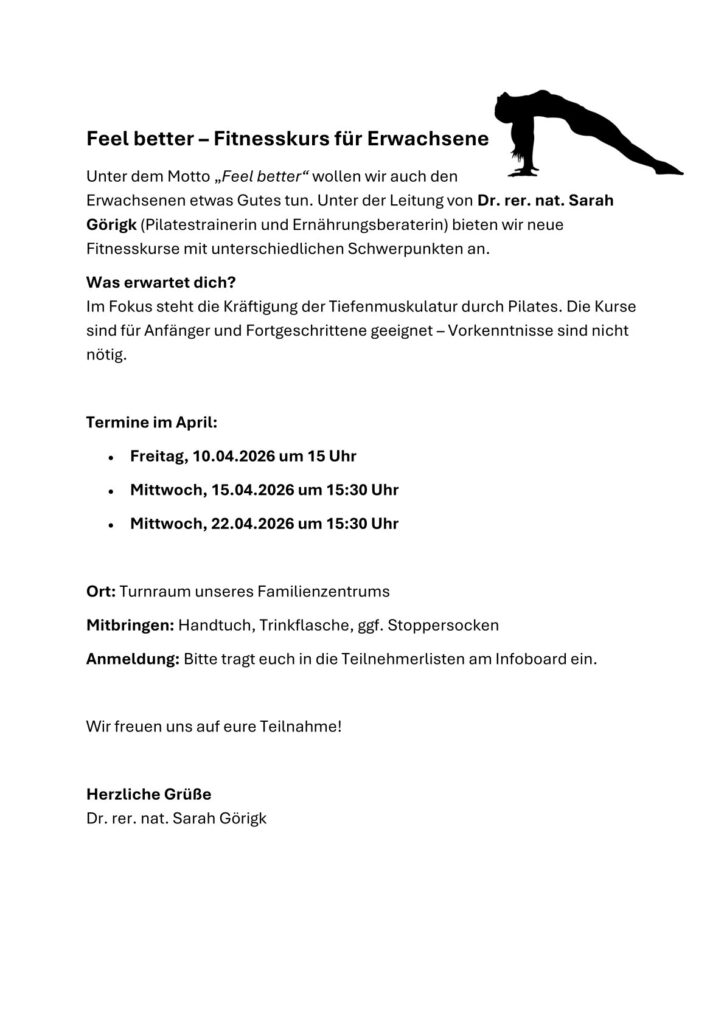 • Feel better – Fitnesskurse für Erwachsene 31. März 2026